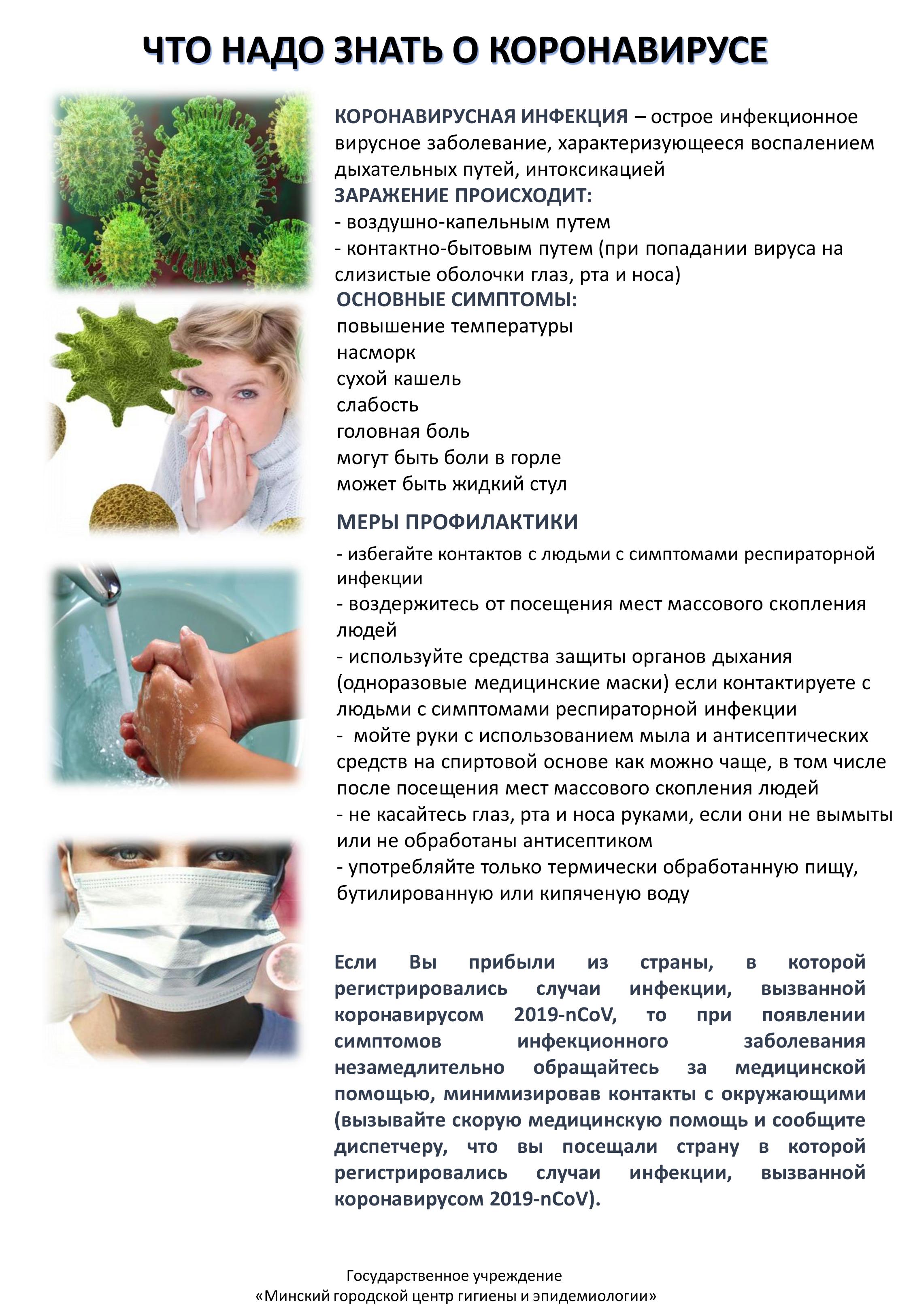 Памятка для лиц, прибывших из стран, в которых регистрировались случаи инфекции, вызванной коронавирусом 2019-nCoV
