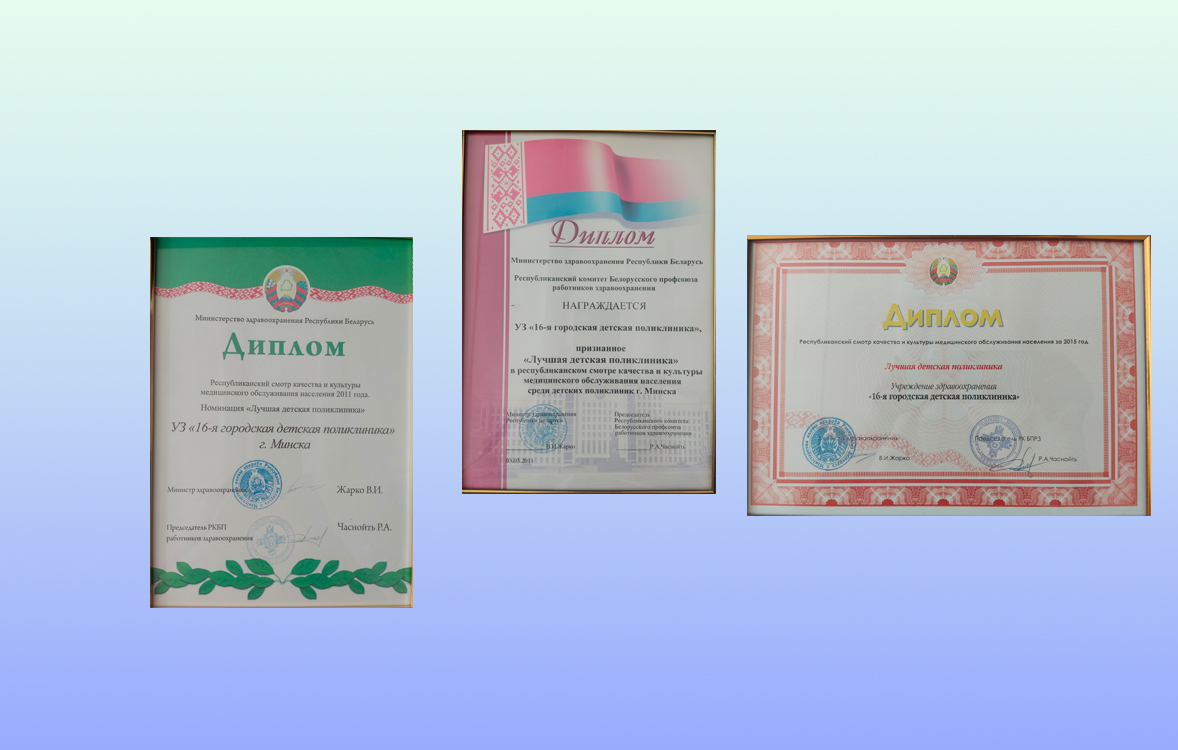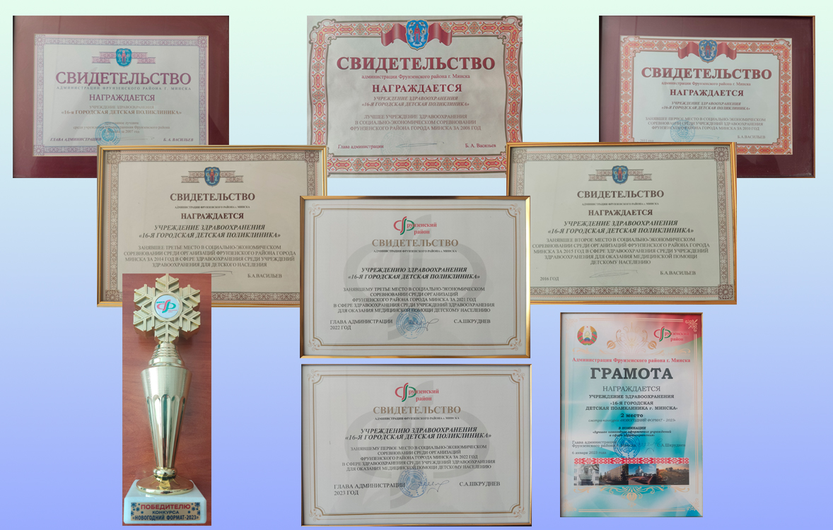 СЕГОДНЯ. 16-я детская поликлиника – современное лечебно-профилактическое учреждение, обслуживающее около 12000 детей и подростков. Является многопрофильным учреждением здравоохранения по организации своевременной и квалифицированной медицинской помощи несовершеннолетним гражданам Фрунзенского района г.Минска, а также гражданам Республики Беларусь согласно приказам МЗ Республики Беларусь и комитета по здравоохранению Мингорисполкома. Функционирует согласно Устава
